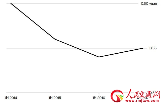 图:去年,中国三大航企的平均国内客运收益率开始回升。