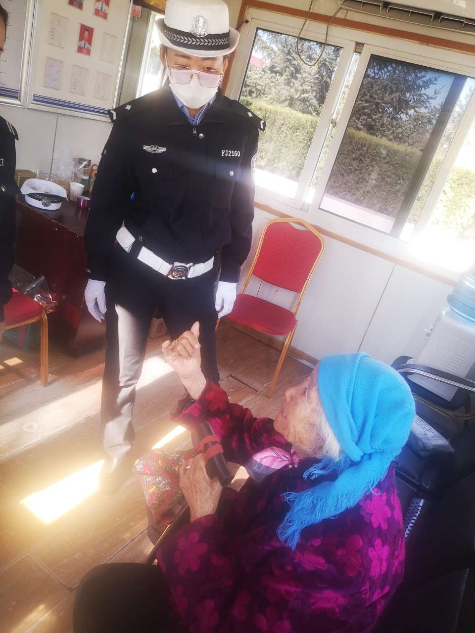 见状,执勤民警一起上前询问并把老人带进岗亭稍作休息,据老人讲述,自己已经87岁高龄了,自己的老伴是老红军,自己早上坐车来民政局领红军遗属补助,结果没想到办事的地方换了位置,事情没办成却迷路了,家里也再没有其他人了,自己不知道该去哪了,也不知道该咋办了。