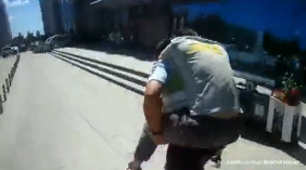 到达医院,辅警管洋背着患者一路小跑到达急诊科,此时患者疼痛更加剧烈,右手紧捂胸口,但口中仍不住地说道“谢谢你们,谢谢!”