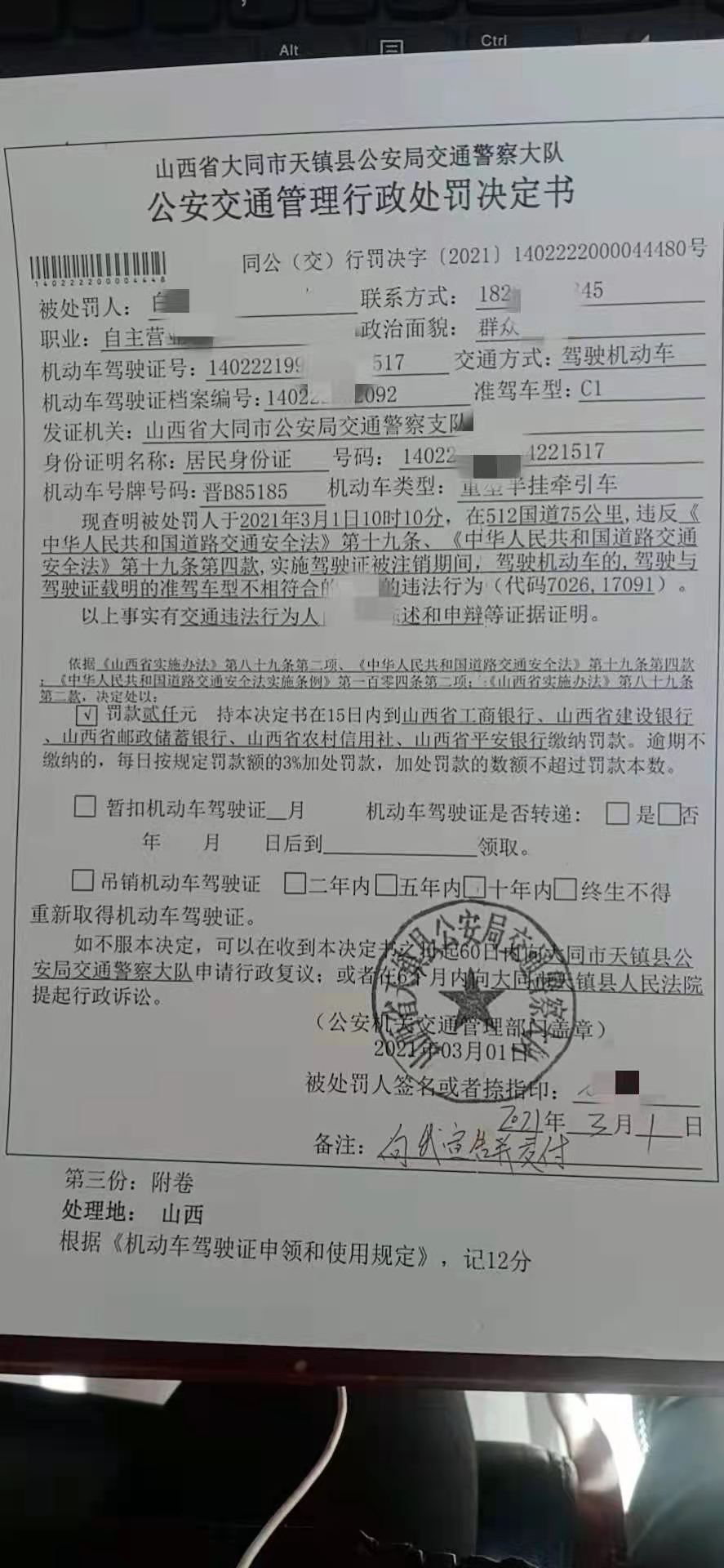 为进一步规范辖区道路交通秩序,确保道路交通安全,按照“两会”安保要求,2021年3月1日上午,天镇交警张西河中队在512国道张西河公安检查站,依法对过往车辆例行检查过程中,再次查获一起重型半挂车准驾不符、驾照注销的严重交通违法行为。