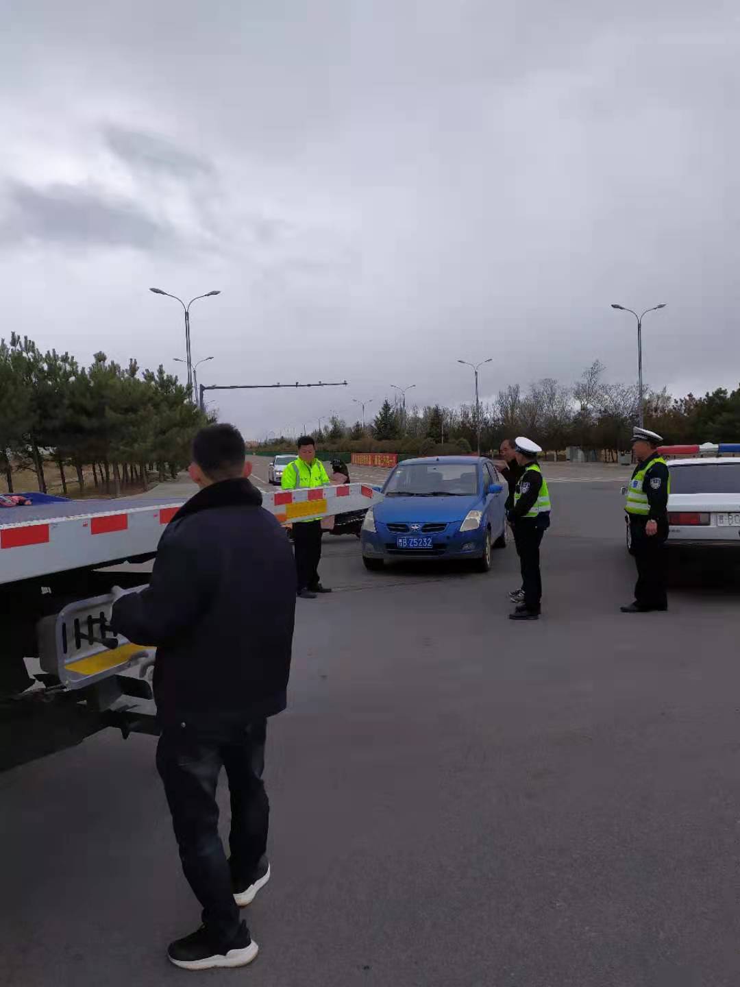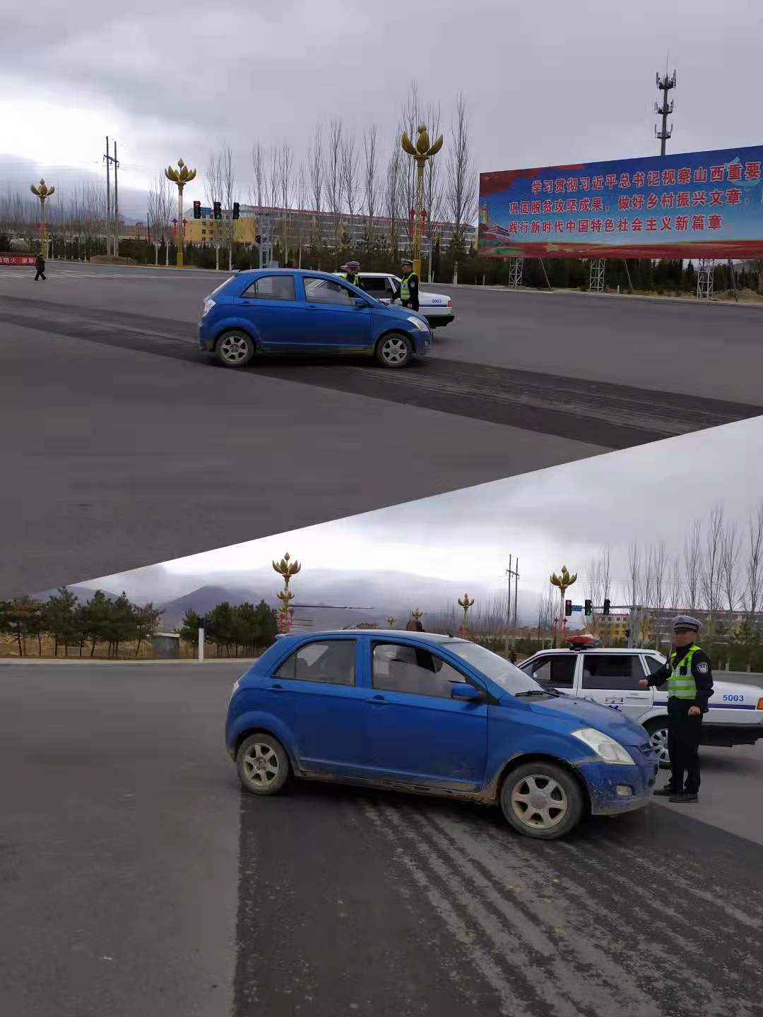 4月12日上午11时许,一辆蓝色小轿车行驶至天镇三中丁字路口时,方向突然失灵。车辆被迫停在路口中央,驾驶员急得不知如何是好。天镇交警队机动中队民警在该路段巡逻经过,发现状况后,迅速上前察看。了解情况后,民警协助驾驶员试着让车辆恢复方向,但是短暂的操作处理后还是没有效果。因为车辆正好位于路口正中央,严重影响了通行,执勤民警迅速拨打了救援电话并维持路口交通秩序,待车辆被安全拖走后才离开现场。