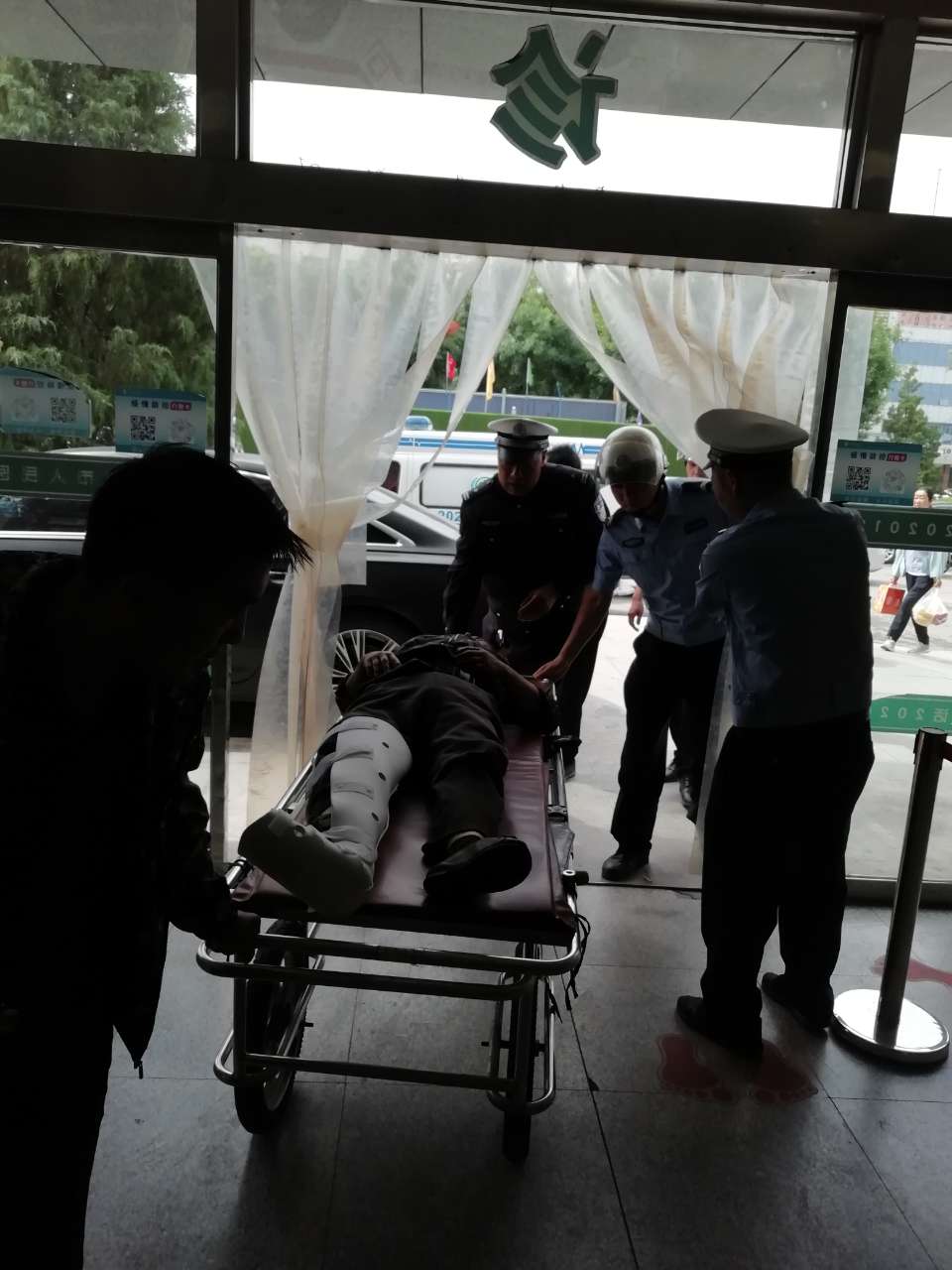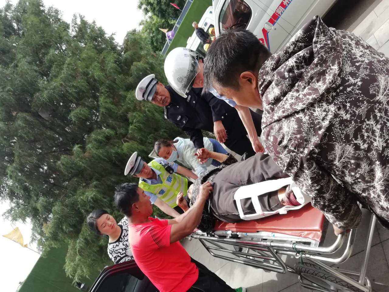 6月7日上午9时30分许,平鲁交警大队歇马关中队执勤民警接到指挥中心指令:在辖区发生一起交通事故,事故中有人受伤,急需送市人民医院抢救。情况危急,事关群众生命安然!中队民警立即赶赴事故现场,在现场前后设置安全警示标志,指挥过往车辆安全顺利通行。同时帮助医护人员将伤者抬进救护车,并通过鸣响警笛、喊话的方式让其他车辆让行,为救护车开道带路。在确保安全的前提下,以最快的速度,最短的时间,一路护送车辆到达医院,为受伤人员全力疏导出一条"绿色通道",为伤员的救治赢得了宝贵的时间。