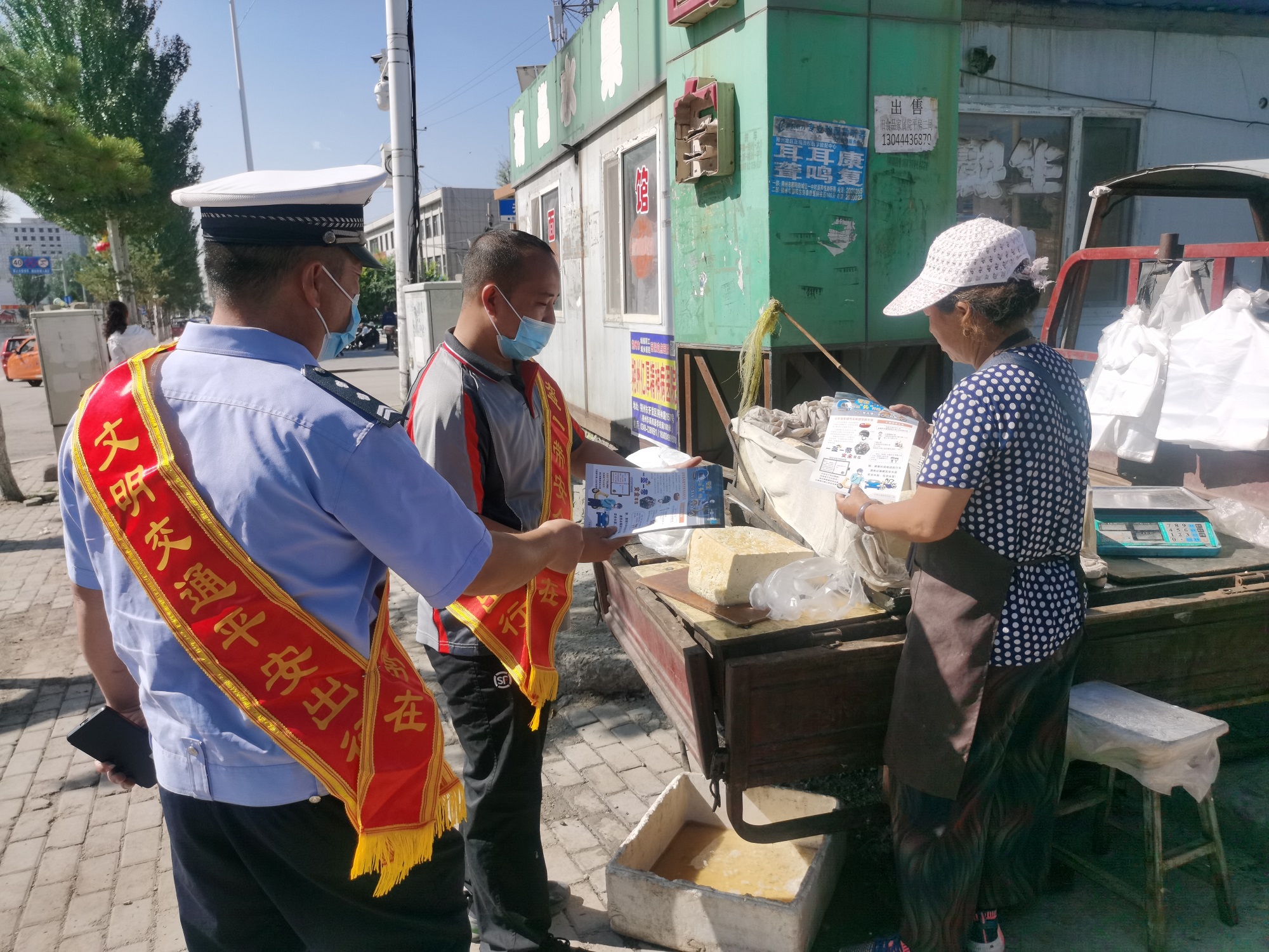 近年来,因不戴头盔、开车不系安全带等交通陋习造成的交通事故居高不下,直接给人民群众的生命财产造成重大损失。为切实增强辖区群众的交通安全意识和文明出行意识,把好交通安全最后一道防线。近日,平鲁交警大队组织美团外卖、顺丰快递全力开展“一盔一带”主题宣传活动。
