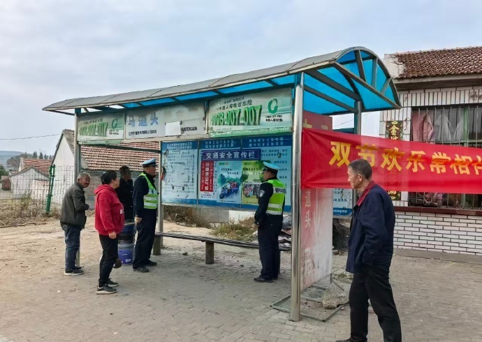 视觉警示全覆盖:在村委会、集市等人员密集处张贴交通安全海报,悬挂两节期间交通安全提示醒目条幅,以直观的视觉冲击强化村民安全意识。