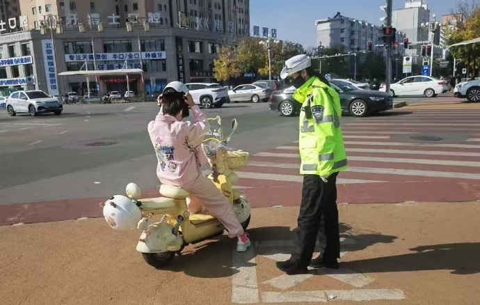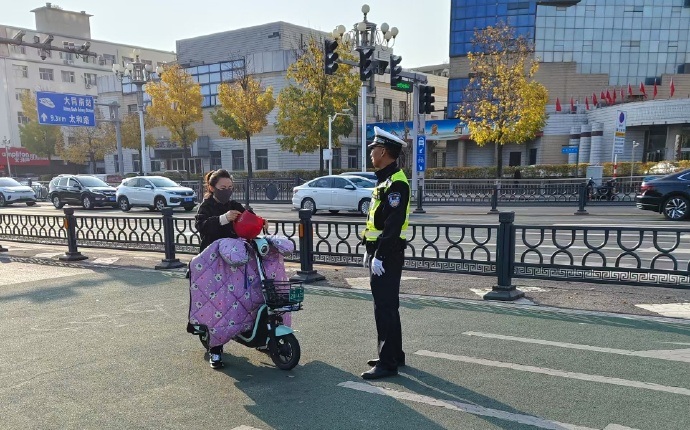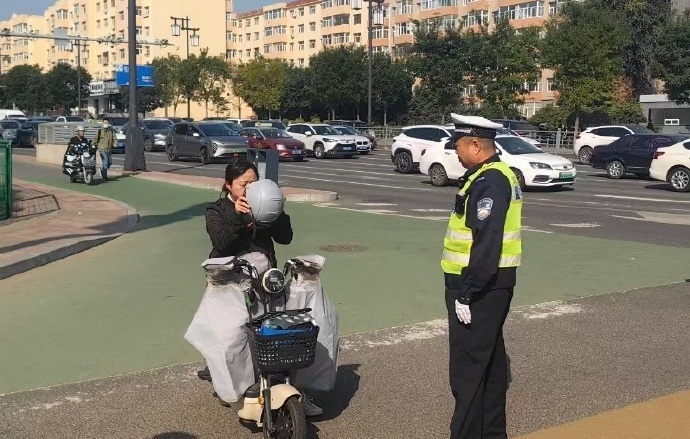 国庆假期群众出行量大幅攀升,电动车因灵活便捷成为不少人的出行首选,但骑行人不戴头盔等安全隐患也随之凸显。为筑牢道路交通安全防线,交管三大队坚持节假日纠违工作不松劲,在福康里街口、新健康岗、三医院岗、消防岗等辖区重点点位,持续开展不间断的电动车交通违法纠正行动。