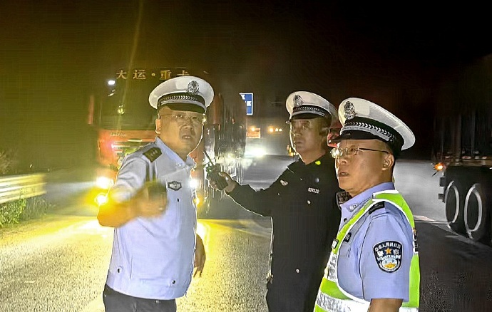 9月13日晚,大同市公安局交通管理支队八大队在国道109线蔡庄路段,通过设卡检查和流动巡查,对超载货车严格查缉。在此次行动中,共查获严重超载货车5辆,其中车货总质量超过100吨以上的3辆,超载50%以上的2辆,大同市公安局交通管理支队八大队民警依据《中华人民共和国道路交通安全法》对5名驾驶人分别作出处罚,并责令其卸载超限货物至合法载重标准。