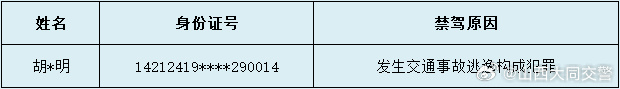 以下1名驾驶人因发生交通事故逃逸构成犯罪,被依法吊销机动车驾驶证,且终身不得重新取得机动车驾驶证。