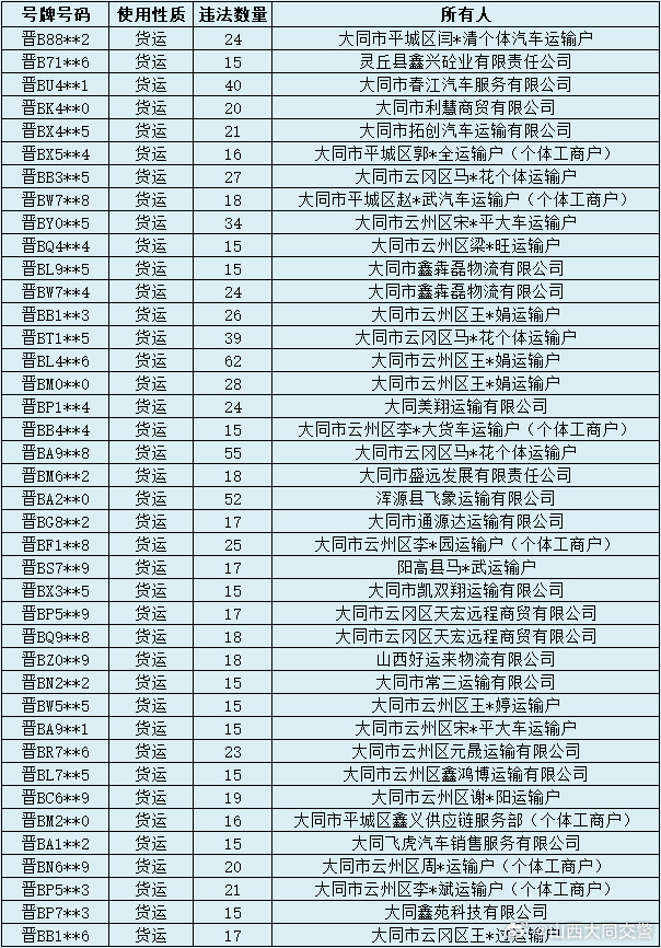 为加大道路交通安全管理力度,进一步提高辖区驾驶人道路交通安全意识、守法意识,对辖区内存在违法未处理数量达到15次(含)的重点车辆进行梳理、公告。请名单内违法车辆所属企业尽快处理违法,从源头上预防和减少道路交通事故。本数据截止日期为2025年9月29日,如已办理,请忽略。