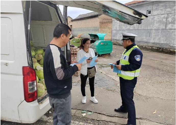 [!--empirenews.page--] [!--empirenews.page--] [!--empirenews.page--]在进行降雨应对的同时,各中队把握雨天群众居家空闲的“黄金窗口期”,组织中队宣传组深入辖区各村庄开展交通安全宣传教育活动,以车载大喇叭滚动播放涵盖酒醉驾、农用车违法载人、骑乘摩托车/电动车不戴头盔等常见违法行为的危害和恶劣天气出行注意事项,并“拉家常”的方式与农民群众进行面对面交流,结合本地近年发生的农用车违法载人、骑乘摩托车不戴安全头盔等典型事故案例,用“身边事”警示“身边人”。同时,向群众发放秋收出行安全、老年人交通安全、恶劣天气出行安全等内容的宣传彩页,手把手指导群众识别交通标志、规避出行风险,切实将安全知识送到群众家门口、装进心里,为秋收季营造安全有序的道路交通环境。