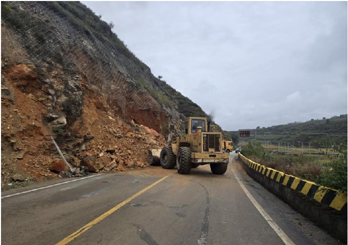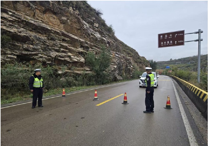 在国省县道,各中队民辅警强化对行车速度管控,采取警灯闪烁、语音提示等方式加强路面管控,提示过往车辆保持安全车速,全力维护好辖区道路交通秩序,严防交通事故发生。同时,针对连续降雨落石、山体滑坡地质灾害易发的实际,加强对山区路段的巡逻管控,及时发现将处置相关安全隐患。10月10日上午9时许,下达枝中队民辅警巡逻至国道239线下达枝村附近路段时,发现该路段发生山体滑波。因落石较大,无法徒手清理,民辅警立刻将险情向大队进行了汇报,并与公路部门取得了联系。同时,在涉险路段两侧设置警戒区域,及时劝导过往车辆改道通行,维护现场秩序。