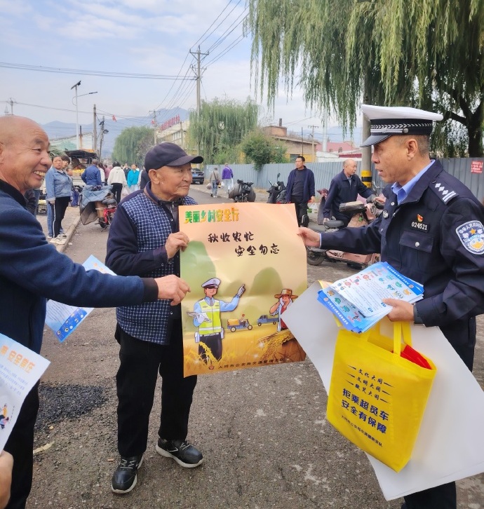 交管六大队在平旺乡王家窑村大集市,民警创新宣传形式,通过编发通俗易懂的顺口溜、剖析本地典型事故案例、发放印有安全提示的实用礼品、利用便携喇叭循环播报等方式,多维度、全覆盖地进行普法宣讲。特别是针对老年人,民警采用当地方言,进行“一对一”耐心讲解和劝导,确保了信息传递的有效性。