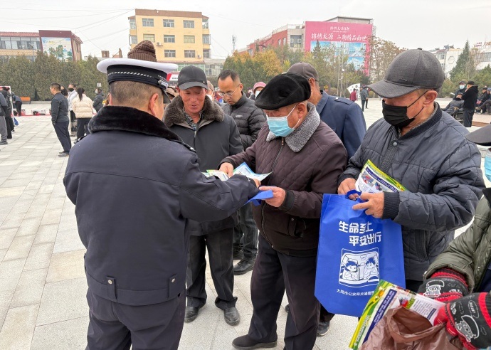 为筑牢交通安全与消防安全“双防线”,切实提升群众防灾减灾意识,增强广大交通参与者的安全防范与应急避险能力,全力预防道路交通事故发生。11月6日,广灵交管大队以2025年“119”消防宣传月活动启动仪式为契机,在县街心广场积极开展交通安全集中宣传活动。