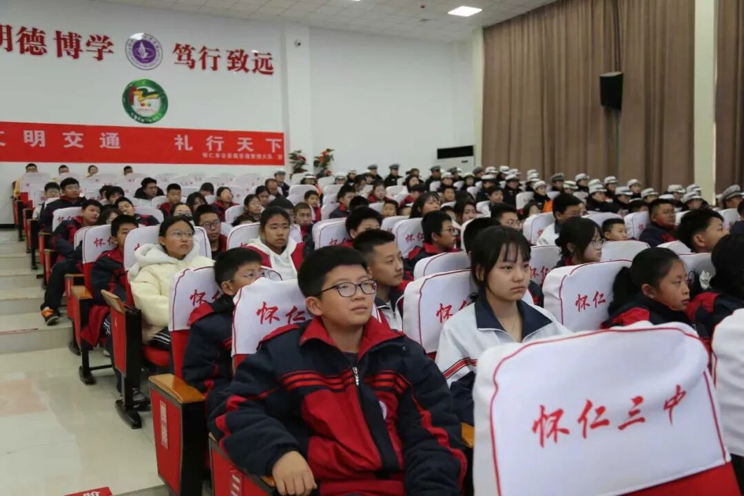 为营造“严格遵守交通法规、自觉维护良好秩序、携手治理交通环境、切实提升文明交通水平”的社会氛围,2025年12月2日上午,怀仁市公安局交通管理大队牵头举办以“文明交通・礼行天下”为主题的12·2“全国交通安全日”主题宣传活动启动仪式,公安局、司法局、网信办、共青团、应急管理局、教育局、宣传部、交通运输局等部门代表,及客运企业、外卖快递行业代表、第三中学师生家长共同参与。