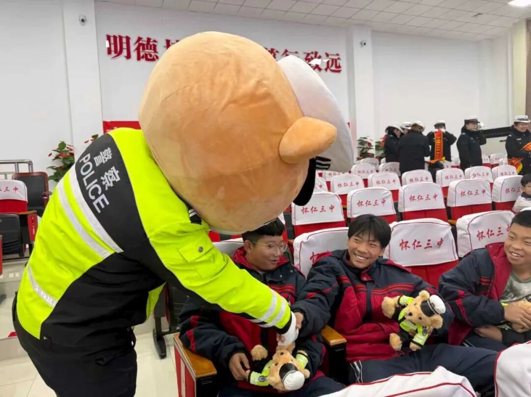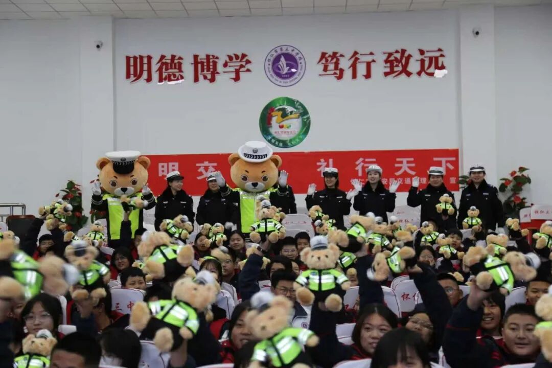 仪式最后,为同学们发放了12・2定制小熊作为纪念,鼓励大家将交通安全知识带回家,与家人共同分享。