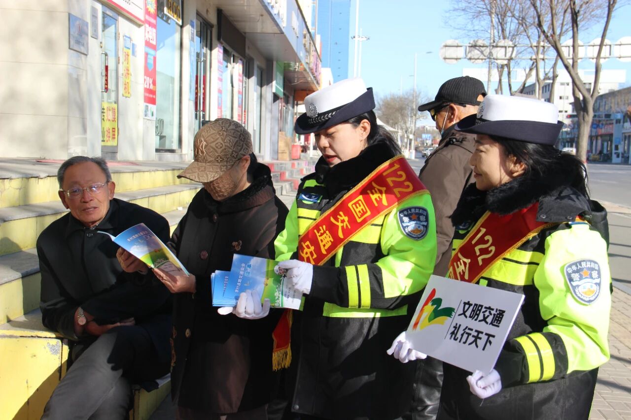 [!--empirenews.page--] [!--empirenews.page--] [!--empirenews.page--] [!--empirenews.page--]活动现场,民辅警为广大群众详细解读“全国交通安全日”的来历与意义,紧紧围绕与安全文明出行相关的话题,从交通陋习、文明交通、出行经验等各方面进行讲解。通过悬挂横幅、摆放展板、发放宣传资料等形式,全方位、立体式开展宣传活动,民辅警面对面向过往群众重点讲解“一盔一带”的重要性和酒驾醉驾、超员超速、疲劳驾驶等交通违法行为的危害。针对老年群体,重点强调冬季安全出行注意事项,细心讲解闯红灯、三轮车违法载人等交通违法行为的危害性和严重后果,并耐心为群众解答交通安全相关知识,教育引导群众要树立文明交通意识和法治意识,切实让“文明交通礼行天下”主题活动深入人心,践行于行。