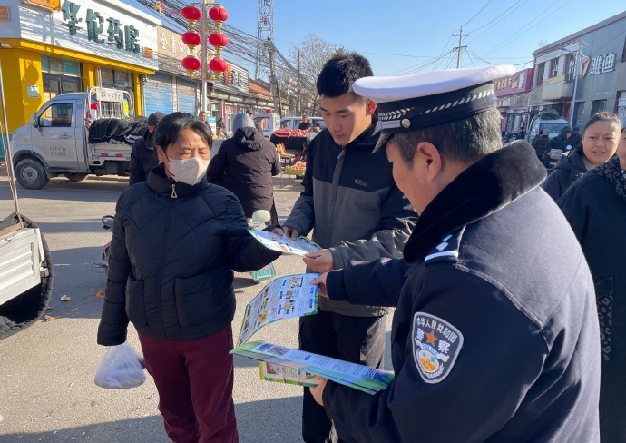 [!--empirenews.page--] [!--empirenews.page--]活动中,宣传民警穿梭在集市摊位之间,向赶集的村民、商户发放宣传资料:遇到买菜的老人,重点提醒过马路要“一停二看三通过”,切勿随意横穿马路;碰到骑电动车没戴头盔的骑乘人员,递上宣传资料耐心讲解不佩戴安全头盔的危害及风险。民警以“拉家常”的亲切方式与村民互动,让交通法规“活”起来、“实”起来。同时,利用“农村大喇叭”播报交通安全提示,让安全声音传遍村落角落。