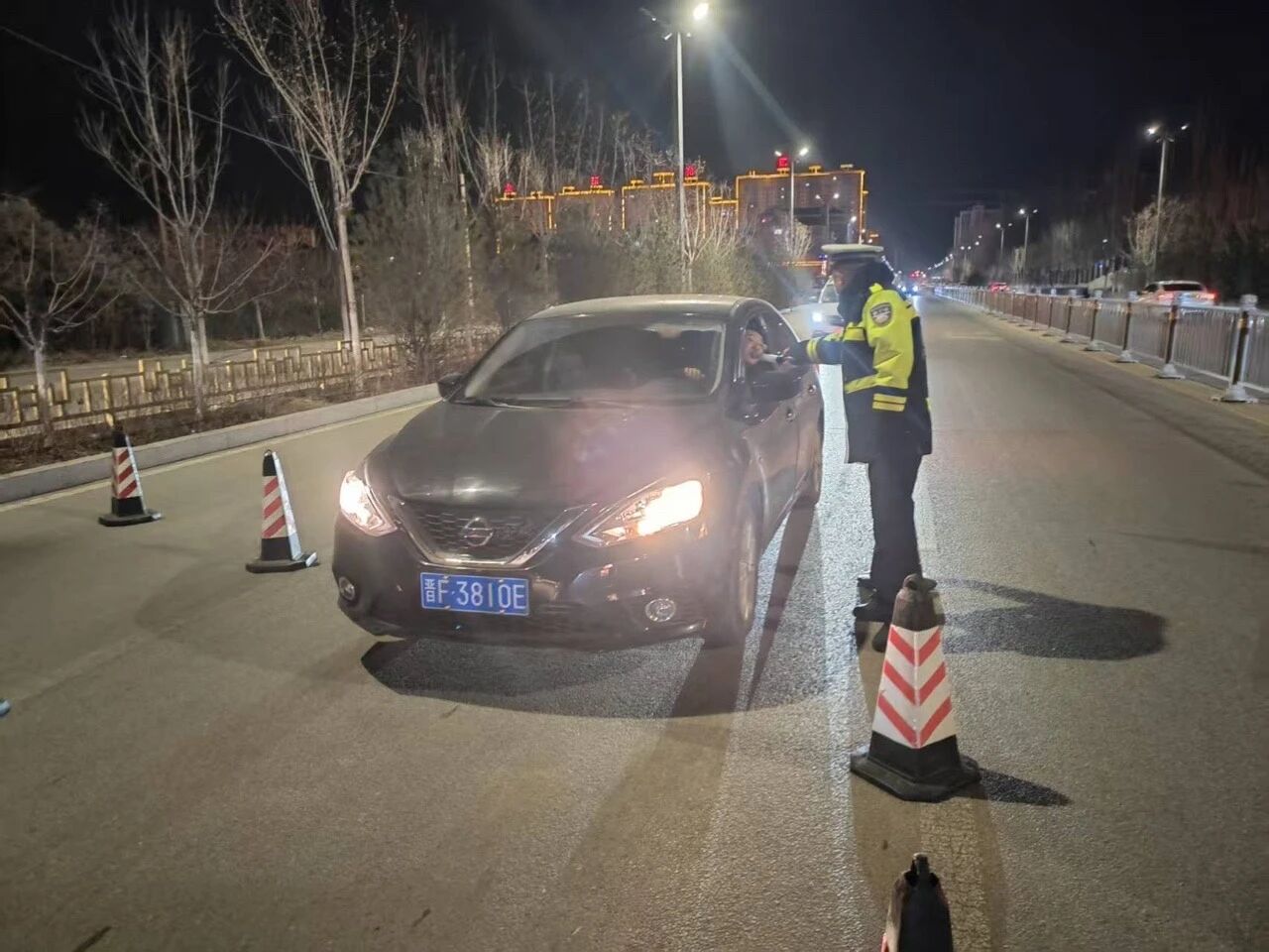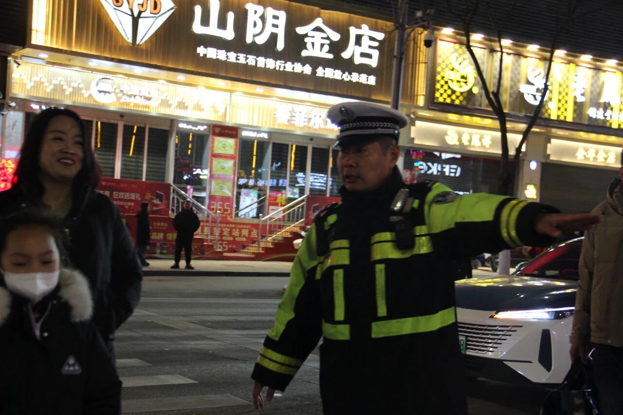 山阴县公安局交通管理大队民警对涉及夜晚群体活动的重点路口路段和大型活动场所、商业圈、人流密集场所周边安排专门警力指挥疏导,并对酒醉驾、毒驾、涉牌涉证、三超一疲劳等突出交通违法进行纠正处罚,为群众夜间出行提供更加安全、畅通的道路交通环境。