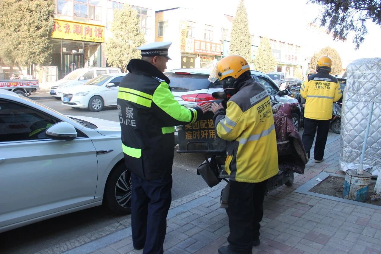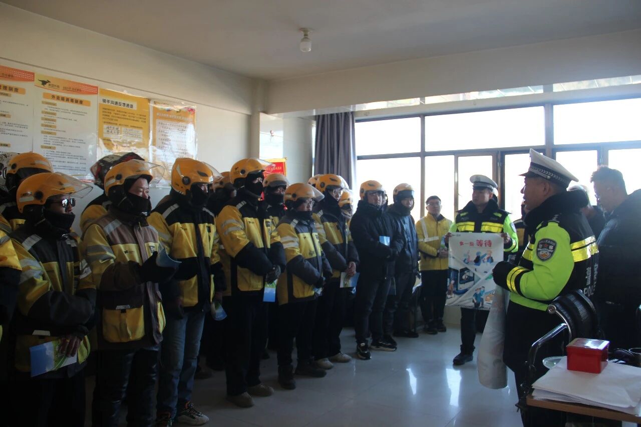 为进一步提高外卖骑手群体遵守交通法规的自觉性和安全出行意识,营造安全、畅通、有序的道路交通环境。山阴县公安局交通管理大队走进辖区美团外卖公司,开展交通安全宣传活动,为外卖骑手们送上了一份“冬季交通安全知识大餐”。
