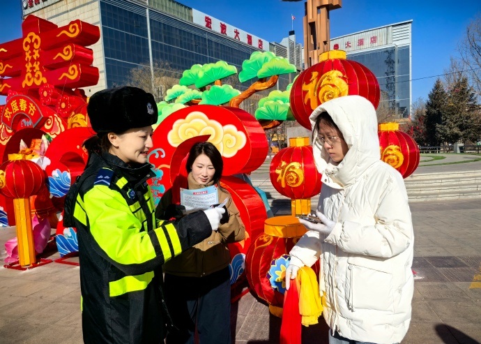 左云交管大队结合新春民俗活动,组织民辅警深入文化广场、乡村民俗排练现场,趁节目间隙开展“零距离”宣传。民警结合冬季出行特点,讲解交通违法危害,发放宣传资料、解答群众疑问,叮嘱群众文明出行,让安全知识在欢声笑语中传递。