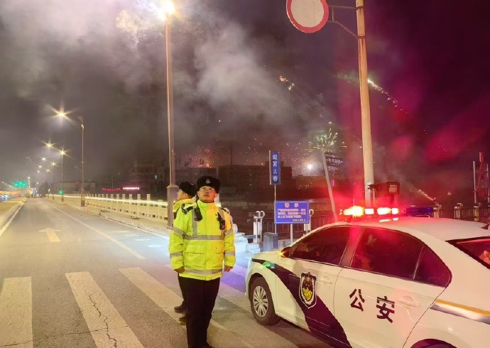 春节期间,交管七大队由大队长亲自指挥督导,除夕夜开展酒驾醉驾专项整治,在餐饮娱乐场所等繁华路段设卡盘查。同时,调集18名精锐警力,驻守新荣区烟花集中燃放现场,管控交通秩序、疏导人流车流,实现燃放区域道路零拥堵、安全零事故,圆满完成保障任务。
