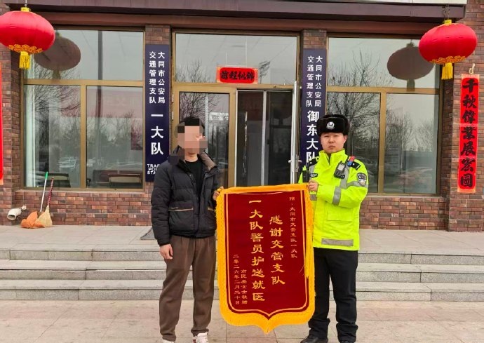 近日,大同市公安局交通管理支队一大队收到一面印有“感谢交管支队一大队警员护送就医”的鲜红锦旗。家属紧紧握住民警的手,连声道谢,感谢交警在危急关头挺身而出,为大出血孕妇抢回宝贵救治时间。