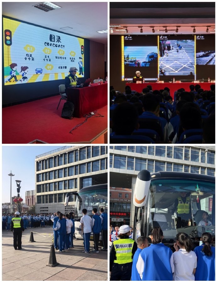 为进一步提升青少年交通安全意识与应急避险能力,筑牢校园交通安全防线,近日,大同市公安局交通管理支队一大队宣传民警走进北京师范大学附属中学,开展交通安全知识专题讲座,并组织大巴车盲区实景体验与应急逃生演练,以“理论+实操”模式为师生送上一堂沉浸式安全课。