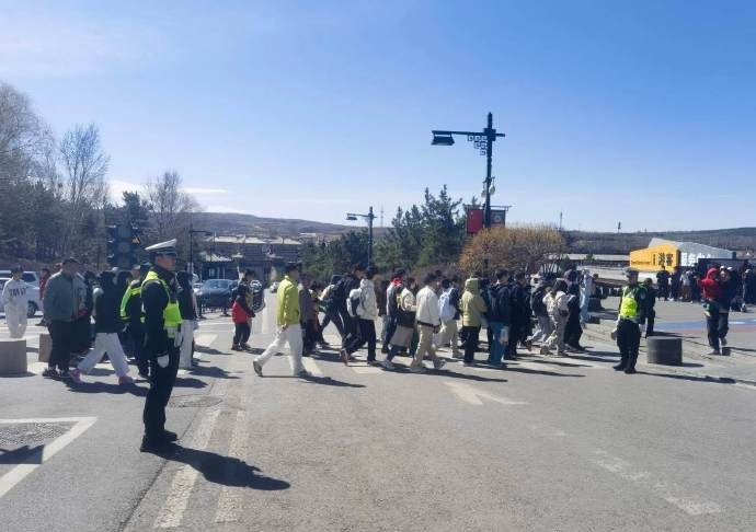 勤务保障大队:民警在车库、停车场等易堵点布设反光锥桶、分流标识,指挥车辆有序停放;夜间持续坚守直至游客散去。针对同煤快线车流激增、事故增多情况,采取“动态巡控+定点预警”模式,快速处置追尾、剐蹭等突发警情,保障车辆高效通行。