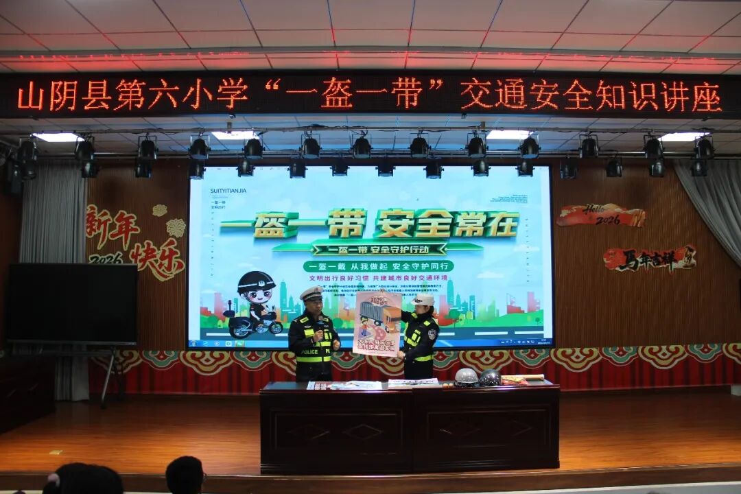 清明节假期前,为切实加强校园道路交通安全管理,增强家长学生假期出行安全防范意识,有效预防涉校交通事故发生,山阴县公安局交通管理大队民辅警深入辖区山阴县第六小学,组织家长委员会成员和学生代表,持续开展以“一盔一带”为主题交通安全知识讲座。