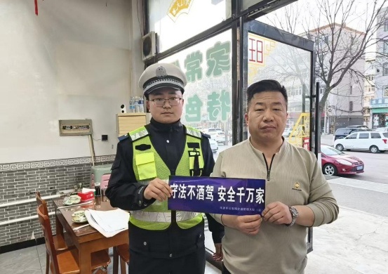 进餐饮场所,筑牢餐桌安全防线。浑源县公安局交通管理大队组织民辅警,深入辖区餐饮场所,以“宣传+互动+警示”模式开展“拒绝酒驾”宣传。在餐饮场所显眼位置张贴、摆放警示标语,直观引导群众树立“喝酒不开车”理念;同时面对面以案释法,结合典型案例,以案释法,生动讲解酒驾危害与法律后果,消除安全隐患。