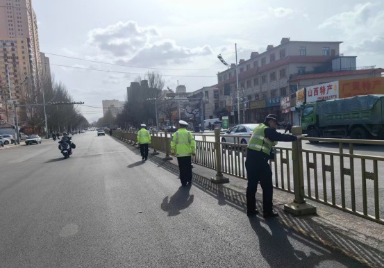 发现这一紧急情况后,交管六大队四中队执勤警力迅速响应,第一时间赶赴现场。民警一边设置警示标志,疏导过往车辆减速绕行,一边尝试合力将倒伏的栏杆复位。