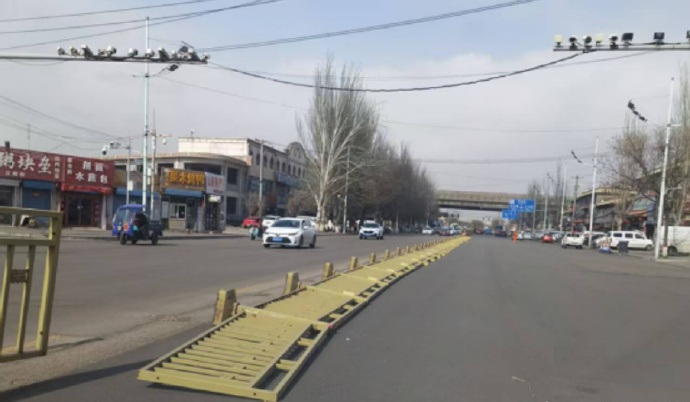 2026年4月9日下午16时许,大同市遭遇大风天气,强劲的阵风导致同泉路沿线一段中央隔离护栏被刮倒,倒伏的栏杆横跨路面,占据了部分机动车道,不仅影响车辆正常通行,更给晚高峰时段的交通安全带来较大隐患。