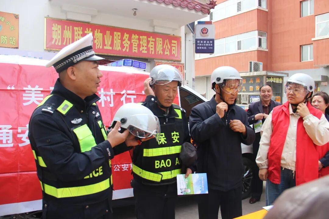 为进一步提升辖区居民电动自行车骑行的交通安全意识,预防和减少道路交通事故,近日,山阴县公安局交通管理大队民辅警联合幸福社区网格员、志愿者走进辖区兴隆小区,开展了“美丽乡村行”一盔一带交通安全宣传活动,将安全知识送到居民家门口。